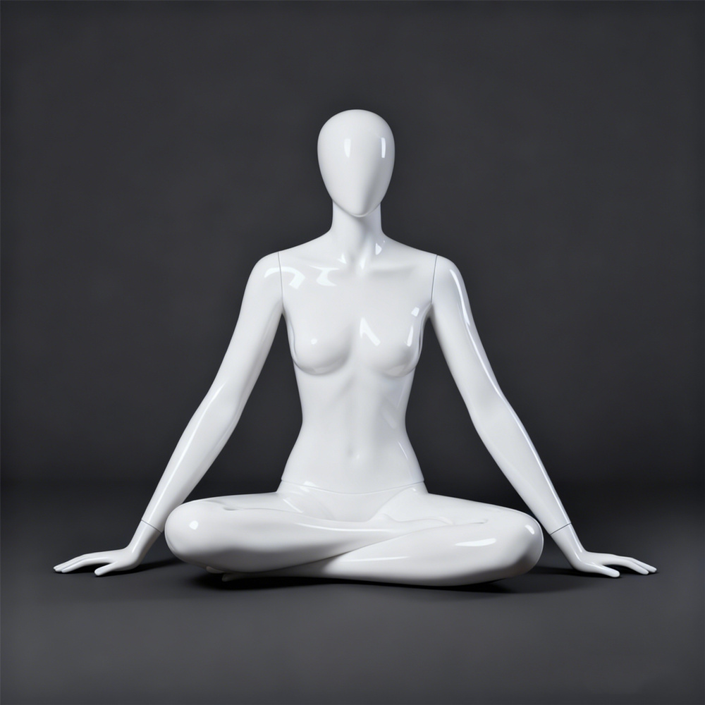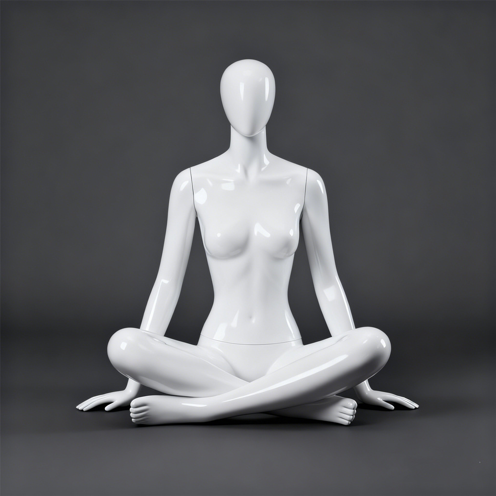 This sleek, faceless Seated Female Mannequin with a high‑gloss white finish works perfectly in modern, minimalist stores. Its simple lines keep attention on the clothes and make it ideal for shop windows and look‑book photos.